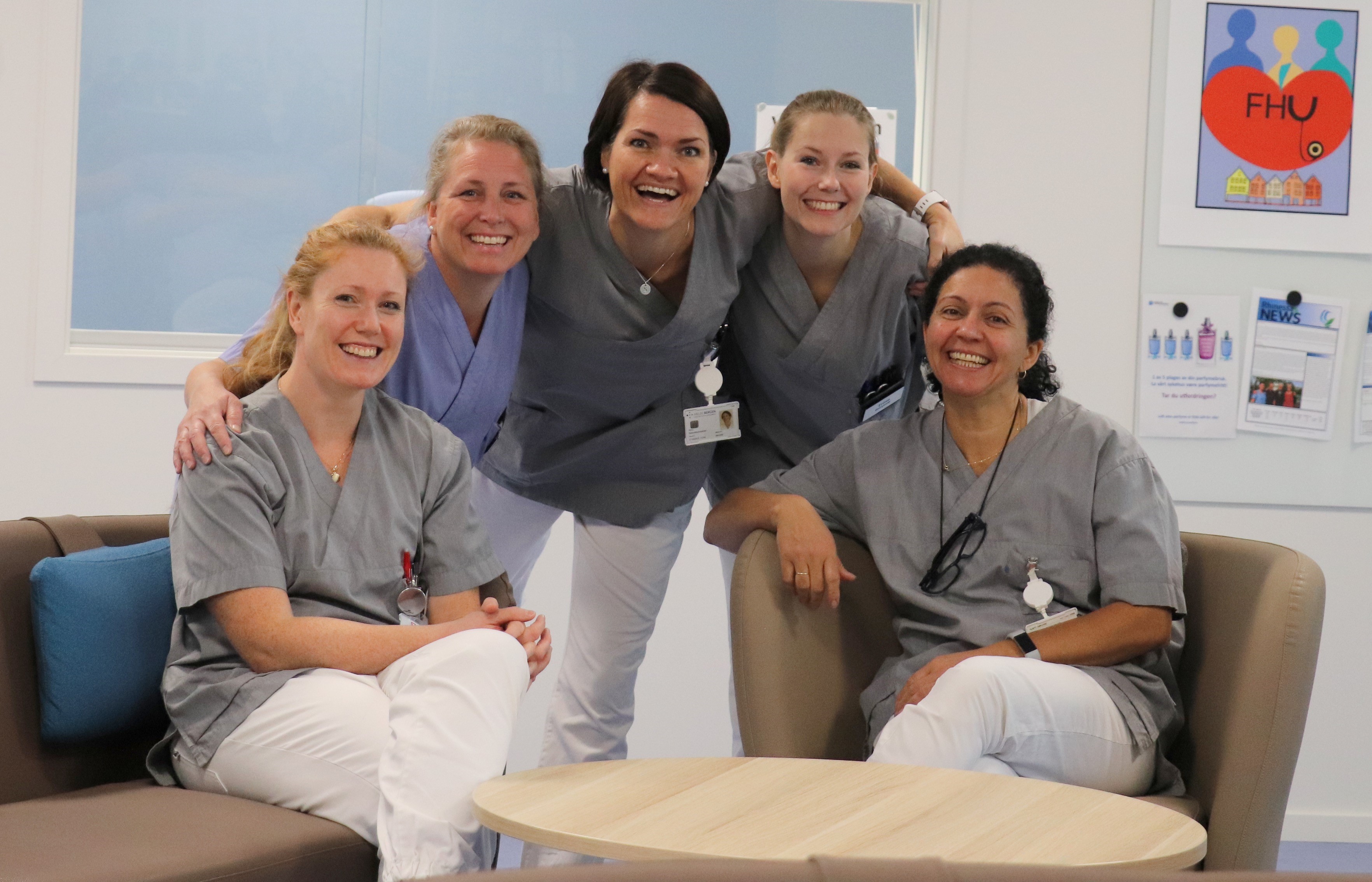 Staben ved FHU i Bergen (Forskningsenhet for folkehelseundersøkelser) som er involvert i analysene. Fra venstre Rita Pedersen, Cathrine Berntsen Alvheim, Synnøve Ygre Hauge, Trine Leikanger og Hilda Andersen