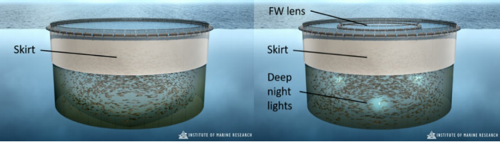 Havforskningsinstituttet, i samarbeid med Mowi, har akkurat avsluttet en feltutprøving hvor målsettingen var å redusere lus og antall avlusninger ved bruk av en ferskvannsbrønn i kombinasjon med andre velkjente metoder. Bruken av medikamenter mot lakselus har gått kraftig ned de siste årene, til fordel for ikke medikamentelle behandlinger. All behandling av fisken medfører stress og økt risiko så det å få gode forebyggende strategier er derfor avgjørende for god fiskevelferd og -prestasjon. Bruk av luseskjørt er en velkjent metode som er utbredt i norsk oppdrettsnæring i dag. Tanken i dette prosjektet var å kombinere vanlige luseskjørt med en ferskvannsbrønn, nattbelysning i dybden, bruk av rensefisk og strategisk fôring for å redusere lusemengden sammenlignet med kun bruk av skjørt.